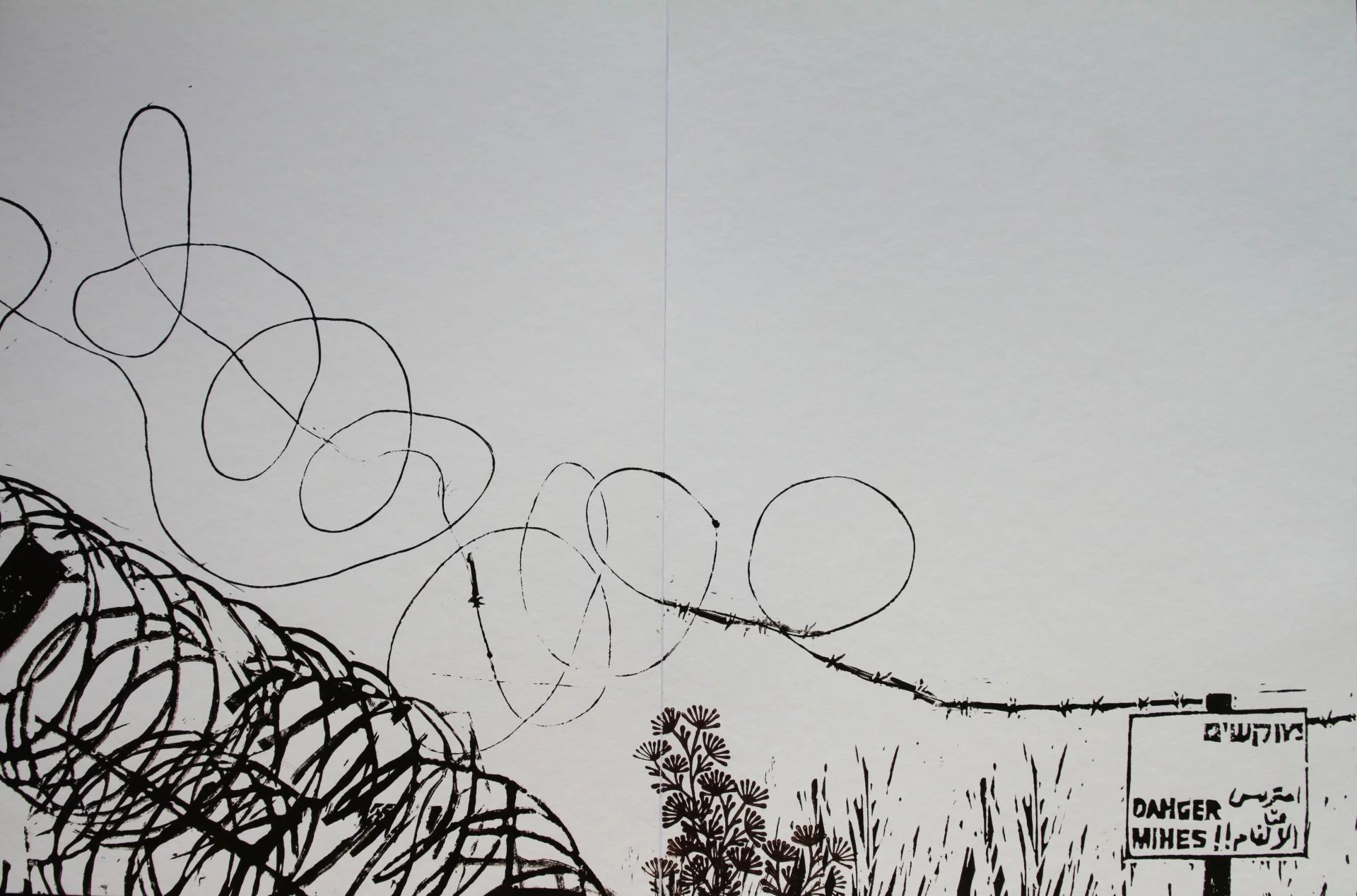 Randa Maddah, Remanence Retour (détail), leporello, linogravure, 32,5 x 526 cm, 2021