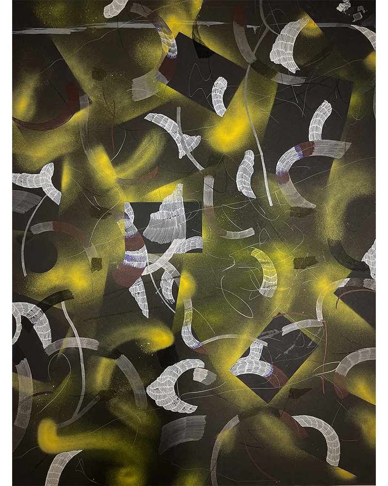 Akshay Rathore, White thing creeping in black 02, 2022 Feutre et aérosol sur carton, 78 x 97 cm