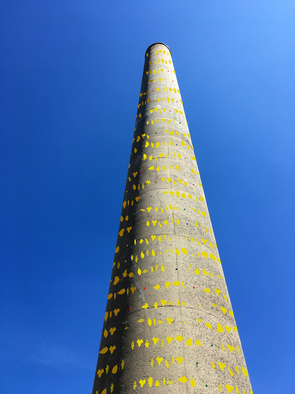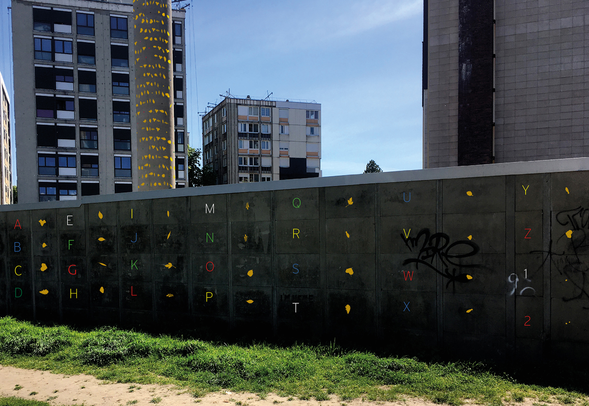 Il s’agissait cette année d’investir une cheminée de chaufferie et son mur d’enceinte à Montreuil, dans la résidence Les Ruffins, comprenant 210 logements, construite dans les années 60 par Maurice Novarina (architecte diplômé en 1933 de l’Ecole nationale supérieure des Beaux-Arts de Paris), qui va faire l’objet d’une réhabilitation complète. Sur les 16 projets adressés par des diplômés de l’Ecole depuis 1 à 3 ans ou étudiants de 4e et 5e année, le jury a retenu le projet d’Elias Gama (diplômé 2018), tant pour son ancrage dans le territoire que sa volonté d’associer les habitants, notamment les enfants.