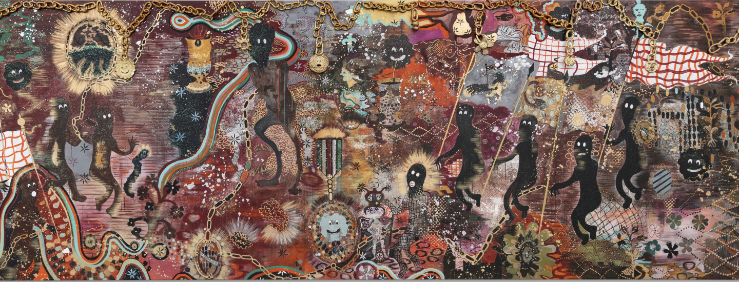 La bataille de San Romano camouflée par Hélène Delprat — 245 x 950 cm © ADAGP, Paris, 2023