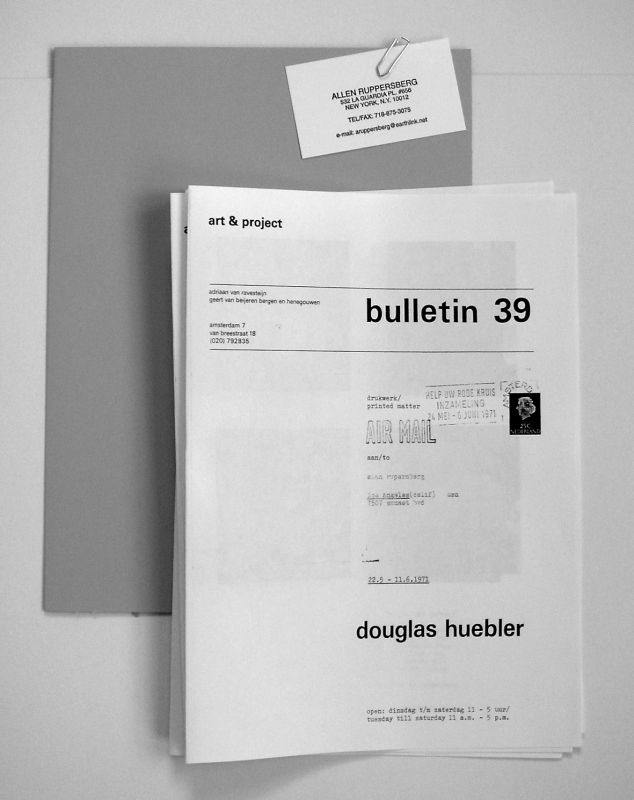 L’édition originale, bulletins 1 à 156, par la galerie Adriaan van Ravejsteijn et Ton Geerts, consistait en un ou plusieurs feuillets doubles imprimés en offset et envoyés gratuitement à un fichier de huit cents adresses. Ces bulletins art & project ont fonctionné comme un véritable espace de création recueillant les interventions les plus diverses de quelques-uns des artistes les plus importants du moment : Bas Jan Ader, Alighiero Boetti, Marcel Broodthaers, Stanley Brouwn, Daniel Buren, Gilbert & George, Douglas Huebler, Imi Knoebel, Richard Long, Sol LeWitt, Allen Ruppersberg et Lawrence Weiner, …