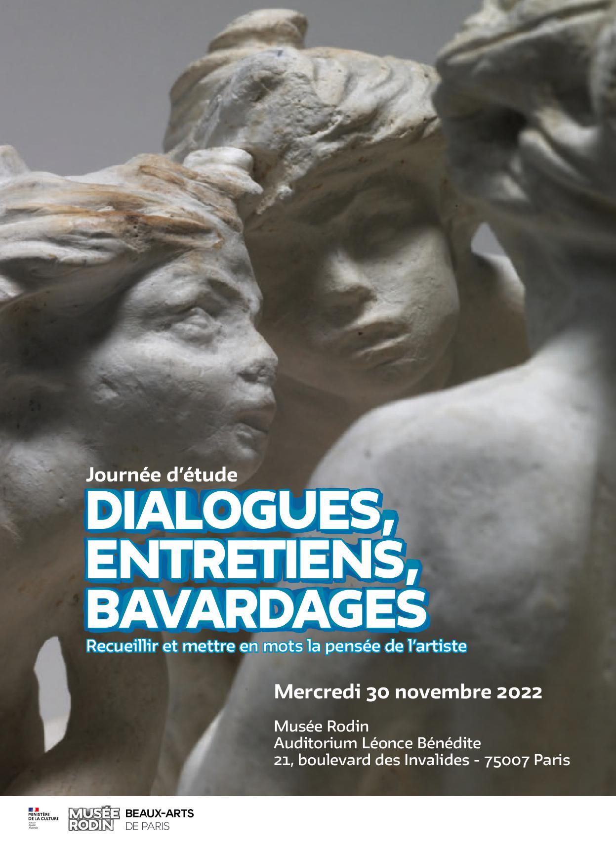 Depuis au moins les Dialogues de Rome de Francisco de Holanda avec Michel-Ange au milieu du XVIe siècle, l’« entretien d’art », comme le nomme Louis Marin, est devenu un genre à part entière de la littérature artistique. Son usage perdura à l’époque moderne, mais il s’imposa à plus forte raison à la charnière des XIXe et XXe siècles, où il contribua à la diffusion de la pensée de l’artiste dans la sphère publique. Rodin lui-même se prêta au jeu à de nombreuses reprises auprès de Truman H. Bartlett, Willem G. C. Byvanck, Ricciotto Canudo, Paul Gsell ou Étienne Dujardin-Beaumetz. L’entretien marque ainsi, le plus souvent, un double temps d’arrêt : celui d’un regard rétrospectif porté sur le développement organique de l’œuvre et celui d’un regard actif porté sur les recherches en cours. Il est en même temps le signe d’un passage à la postérité dont les artistes comme les « interviewers » ont pleinement conscience. Propre à la confidence ou à l’anecdote, l’entretien se défie pourtant des modèles canoniques de la biographie, de la monographie ou du simple texte de critique. Et c’est dans le double écart entre la formulation d’une parole et sa transcription écrite, plus ou moins fidèle, et dans l’interprétation de ces propos, que la frontière entre réalité et fiction se fait ténue. L’ambition de cette journée d’étude sera d’envisager l’entretien selon trois axes principaux : à la fois comme forme, comme méthode et comme source. Elle souhaite en particulier sonder l’historicité de ce genre et son rôle dans l’écriture de l’histoire de l’art et dans l’édification du mythe de l’artiste, de l’époque moderne à nos jours.