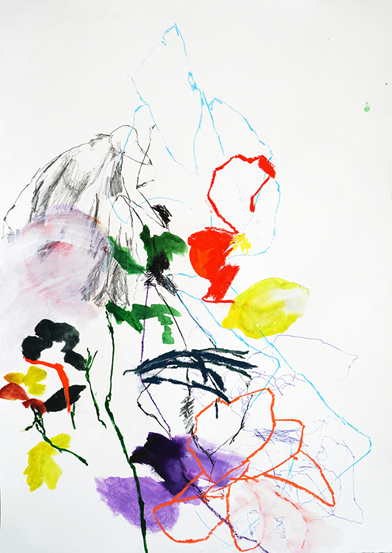 Si tout a commencé par un tas de vêtements et d’objets trouvés, elle réalise en 2019 une série de dessins intitulée Corps, ombres, légumes (qui lui ont valu d’être lauréate du Prix du dessin contemporain des Beaux-Arts), puis des fresques de grande envergure sur le thème végétal au Ministère de la Culture. Cette rencontre avec le vivant vient troubler l’aura du vêtement noir et marque l'avènement de la couleur dans son travail.