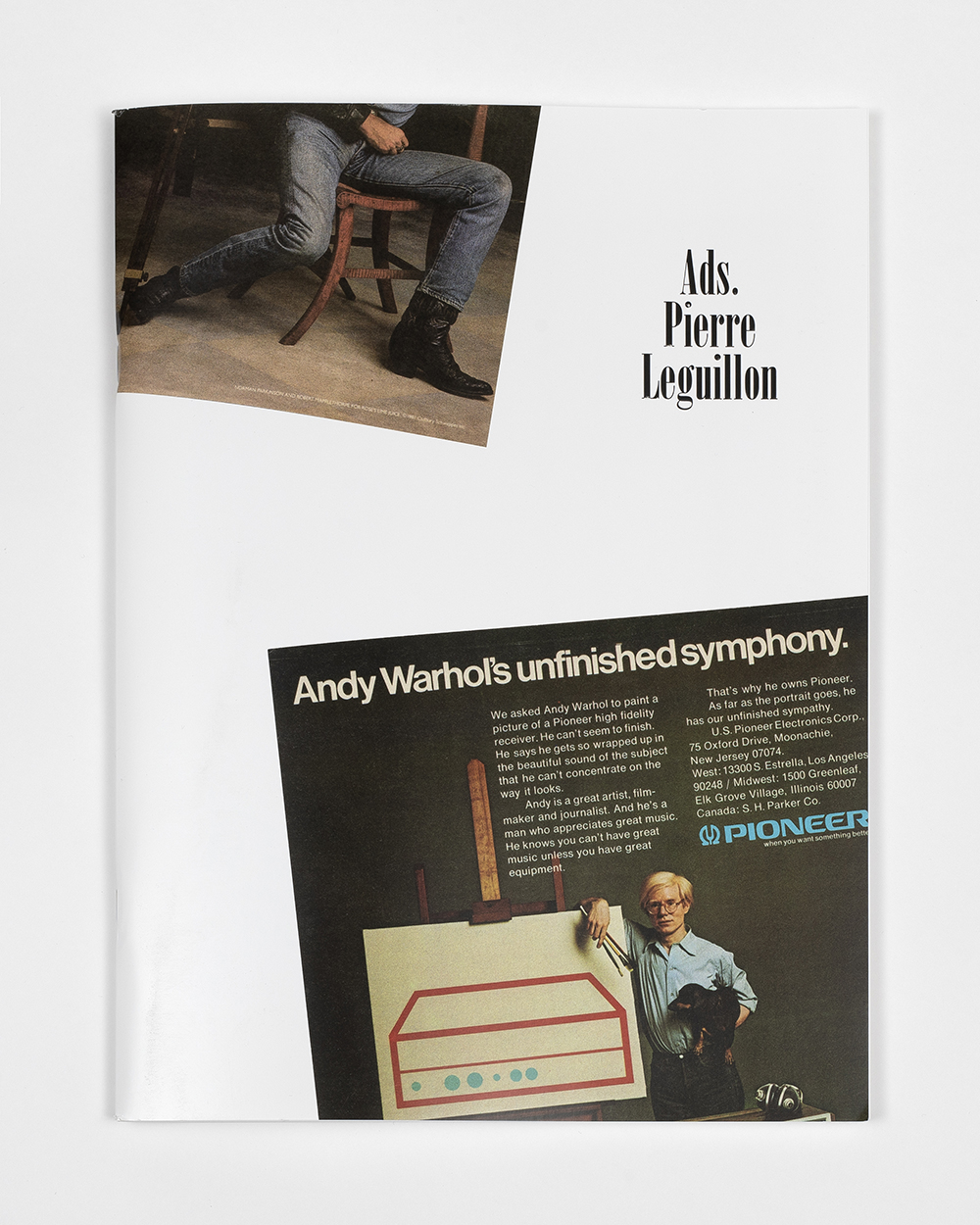 Ads. (le diminutif d’Advertisements en anglais), reproduit 70 pages de publicités arrachées à divers magazines pour lesquelles ont posé des artistes. De Marina Abramovic à Aaron Young. Et des années 1940 à aujourd’hui. Les artistes ne font ici jamais
