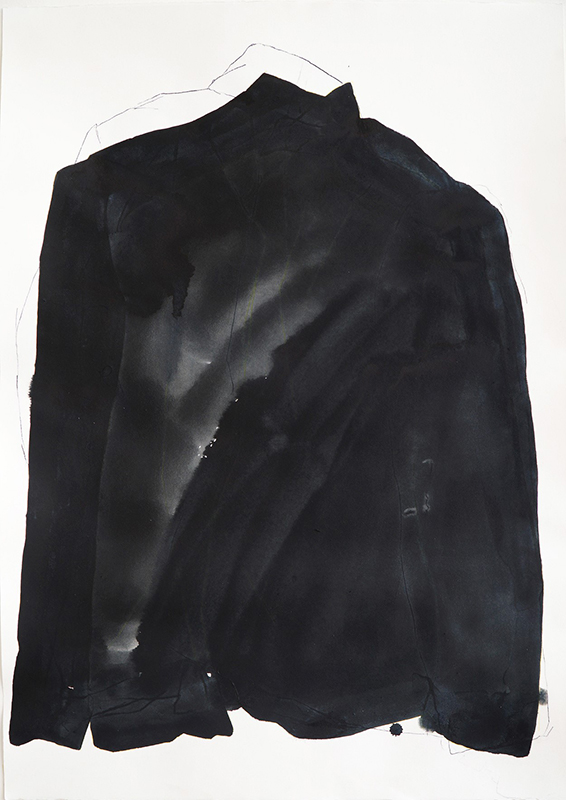 Manon Gignoux, Veste noire, encre et carbone, 70 x 50 cm, 2019