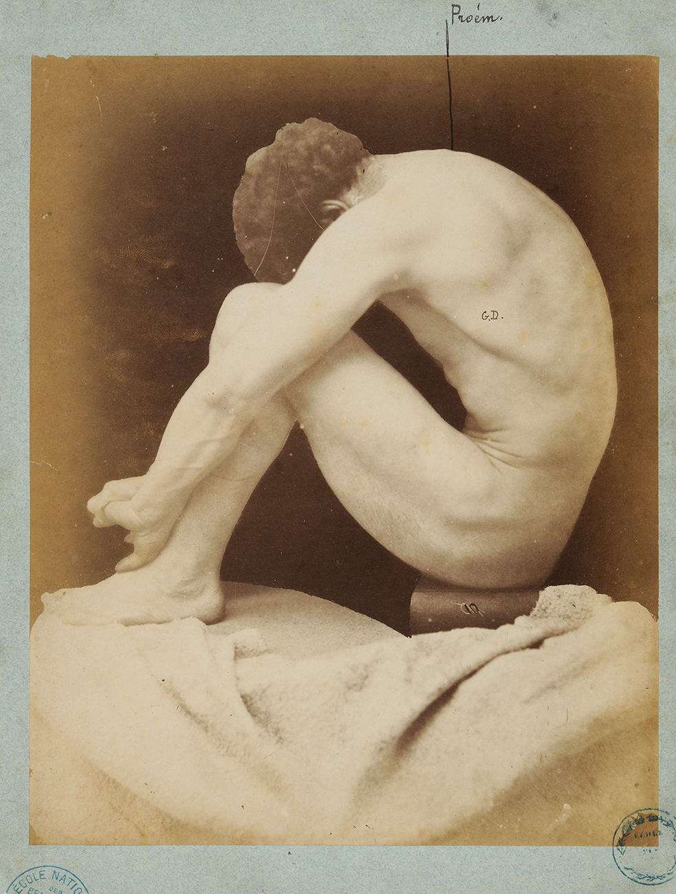 Gaudenzio Marconi, Modèle prenant la pose de l’Homme nu assis au bord de la mer, 1869, Épreuve sur papier albuminé, 26,1 x 20,8 cm