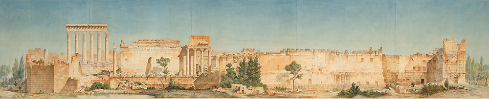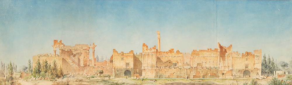 Les qualités graphiques de ces œuvres révèlent les talents d’aquarellistes de ces jeunes architectes et sont des témoignages uniques du site de Baalbek, qui ne connaît ses premières fouilles archéologiques qu’en 1898.