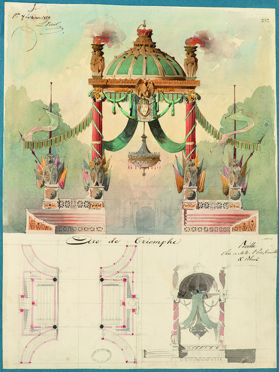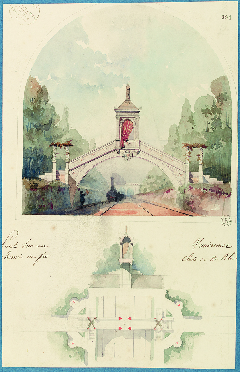 Riche de plus de 40 000 dessins d’architecture, les Beaux-Arts de Paris dévoilent cet automne une partie de cette collection, en exposant trente-quatre aquarelles portant sur des projets d'architecture conçus lors de la formation des jeunes architectes sous le Second Empire.