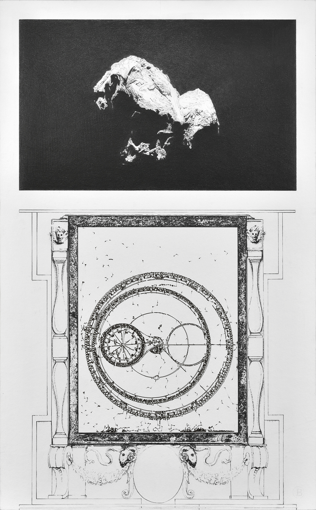 La série de dessins De Sphaera mundi confronte des planisphères du XIIe siècle tirés de La théorie des planètes de Gérard de Crémone aux images d'une comète observée par la sonde spatiale Rosetta ; les cartographies médiévales se téléscopent à la plus récente technologie spatiale. Les trois grands dessins réalisés s'inspirent d'une sculpture de Michel-Ange, datée d'environ 1530 et très abîmée par le temps, représentant le combat le combat d'Hercule contre Cacus. Dans les œuvres de Jean Bedez, le grand Hercule, faisant mordre la poussière à Cacus, redevient poussière lui-même. Son bras droit, celui même qui tient son arme fétiche, a disparu. La ruine le gagne, lumière et ténèbres s'affrontent dans un paysage chaotique. C’est cet Héraclès, abîmé, fragile, qu’évoque Jean Bedez, du moins son aptitude médiocre à parvenir jusqu’à nous intègre, fidèle à lui-même, propriétaire sans concession de la puissance inouïe qui lui était échue. Mais la mythologie n'est pas la seule affaire de l'artiste, chaque motif est chez lui l'écho d'une réalité alchimique, astrophysique, politique, poétique, ésotérique. C'est ce que donnent à voir ses œuvres, détails d'une cosmogonie infinie et labyrinthe qui n'en est qu'à ses débuts.