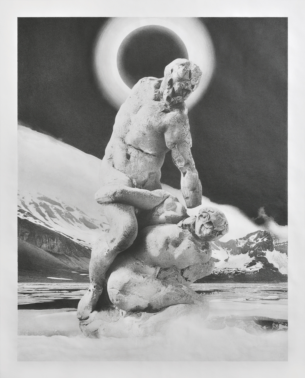 L’exposition présente un ensemble d’œuvres inédites de l’artiste, notamment une série éponyme créée en 2019, ainsi que des œuvres exceptionnelles réalisées pour l’occasion. Elle offre une exploration cosmique revisitant des mythes, en résonance avec les collections de l’École.