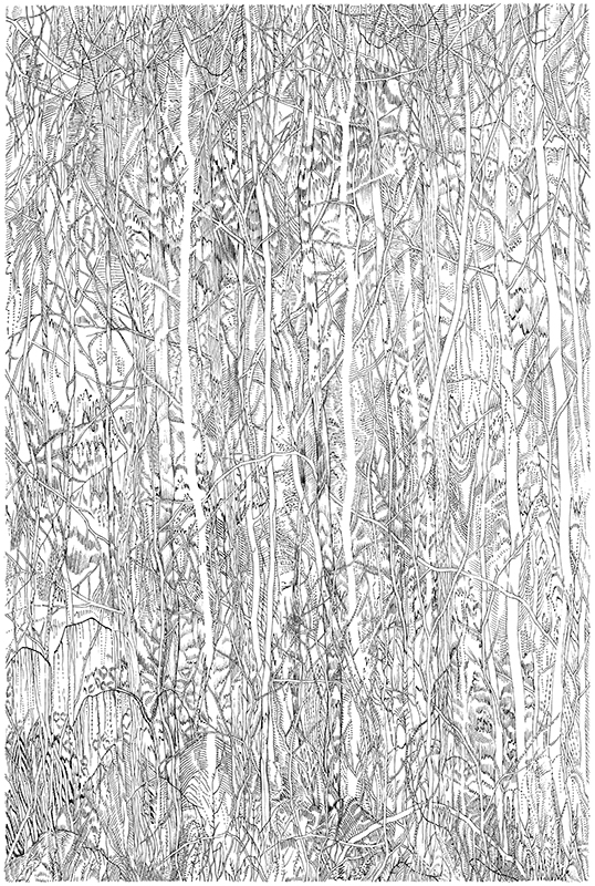 Dessin préparatoire pour la Foret de soie, 2021 encre sur papier, 36 x 26 cm © Eva Jospin