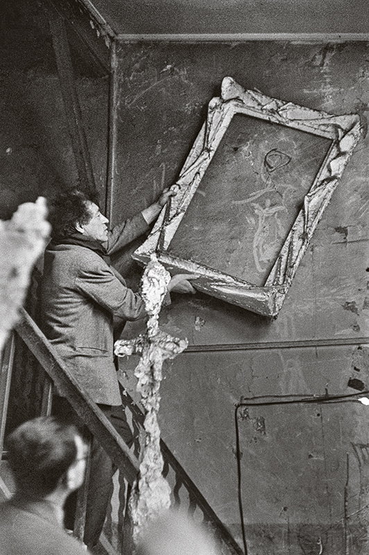 Inge Morath, Alberto Giacometti encadrant un graffiti sur le mur de son atelier parisien au 46 rue Hippolyte-Maindron, 1958 Tirage gélatino-argentique, New York, Inge Morath Estate © Inge Morath / Magnum Photos