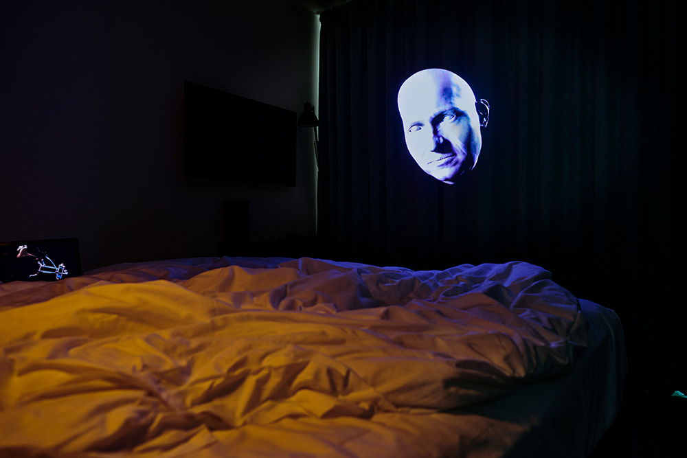 Le visage de Karla, 2020 (vidéo hologramme) flotte dans une chambre. La vraie Karla travaille au filtrage des images et textes offensants pour un géant du net. Son témoignage anonyme est rejoué par une actrice dont le visage a été scanné pour convertir chacune de ses expressions et émotions en données numériques.