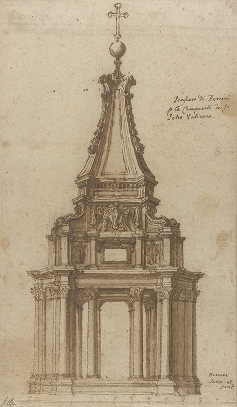 Giovanni Lorenzo Bernini, dit Le Bernin (1598 – 1680) Projet pour le campanile de Saint-Pierre de Rome Pierre noire, plume, encre brune et lavis brun Provenance : Don de Mme Le Soufaché en 1891 © Beaux-Arts de Paris