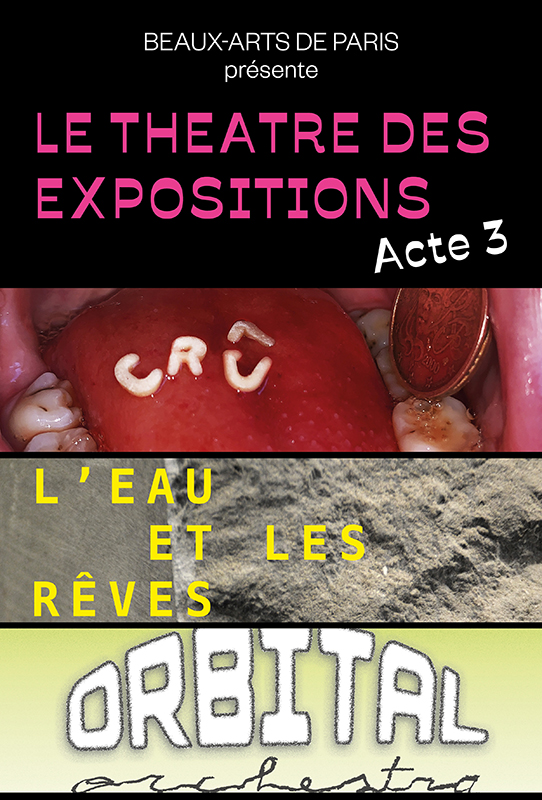 Pour la première fois, jusqu'en 2022, le programme du Palais des Beaux-arts est entièrement conçu, développé et mis en oeuvre par les 25 étudiants de la filière « Artistes & Métiers de l'exposition » et les 11 jeunes commissaires en résidence aux Beaux-Arts de Paris. Crû, L'eau et les rêves, Orbital orchestra, découvrez les projets inédits de l'Acte 3 du Théâtre des expositions, présentés dans un ensemble de salles aménagées pour l'occasion. Chacune à leur manière ces expositions traversent le temps en confrontant les oeuvres patrimoniales des collections de l'École à celles, contemporaines, des professeurs et des étudiants. Ce joyeux laboratoire expérimental met en jeu le principe même d'exposition avec des formes encore inqualifiables, parfois déroutantes.