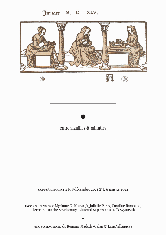 « . » est une exposition bi-événementielle déployée le 8 décembre 2021 et le 6 janvier 2022 depuis les manuels de broderie conservés dans les collections des Beaux-Arts de Paris.