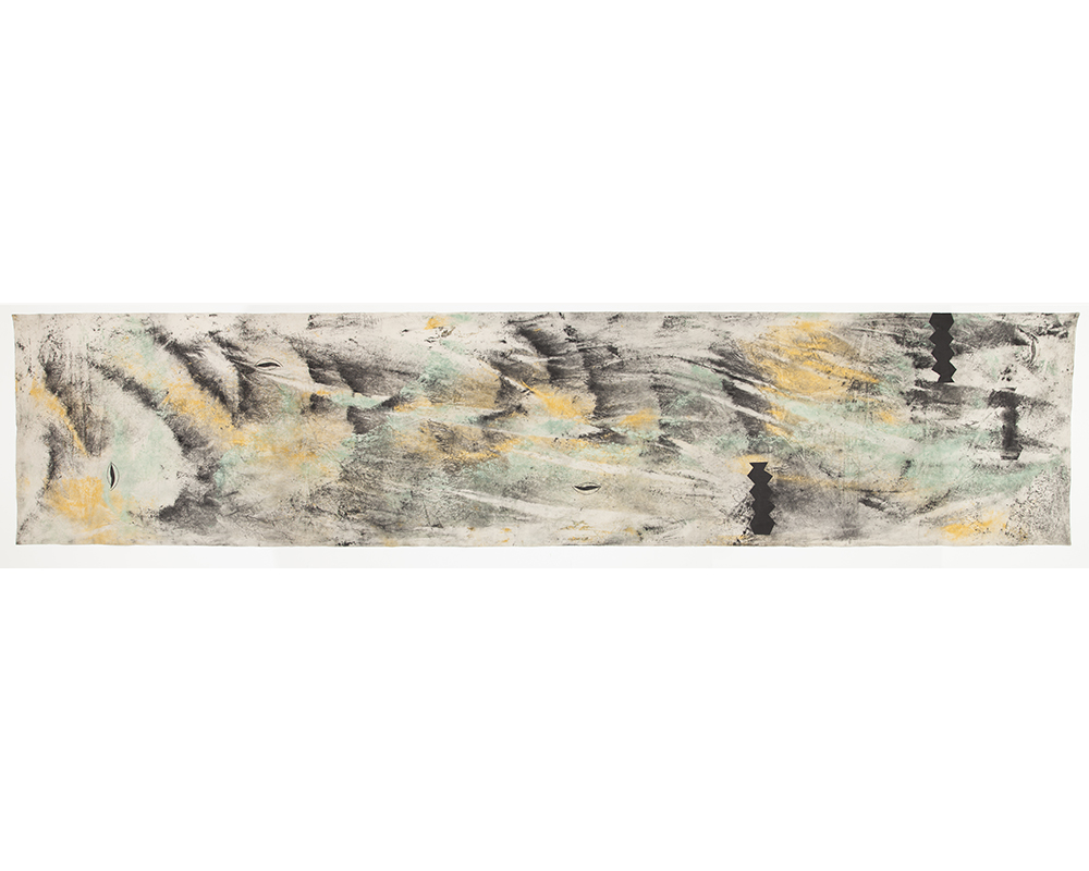 Jessica Warboys réalise ces peintures en suivant un processus unique. Elle badigeonne la toile de cire d'abeille, l'immerge dans des plans d'eau sauvages, puis la saupoudre de pigments minéraux sur les rives. Dans son œuvre vidéo éponyme, l'artiste met en scène le voyage d'une bougie à travers différents sites où la nature et la culture se rencontrent, dont la Biblioteca Joanina à Coimbra, au Portugal, qui abrite une colonie de chauves-souris qui protègent ses précieux manuscrits des insectes, ainsi que la forêt de pins qui entoure le Centre Arvo Pärt à Laulasmaa, en Estonie. La vidéo est accompagnée d'une bande sonore, composée par Morten Norbye Halvorsen à partir de bruits amplifiés des chauves-souris.