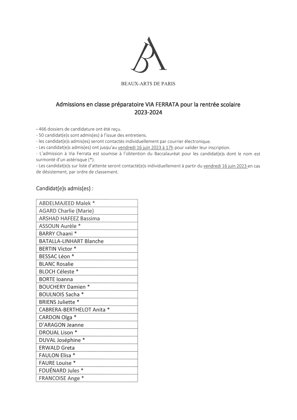 L’équipe pédagogie de VIA FERRATA remercie l’ensemble des candidats pour leur investissement et leur intérêt pour notre formation. Les candidats admis seront contactés individuellement par voie électronique, puis dans l’ordre de la liste d’attente en fonction des désistements.