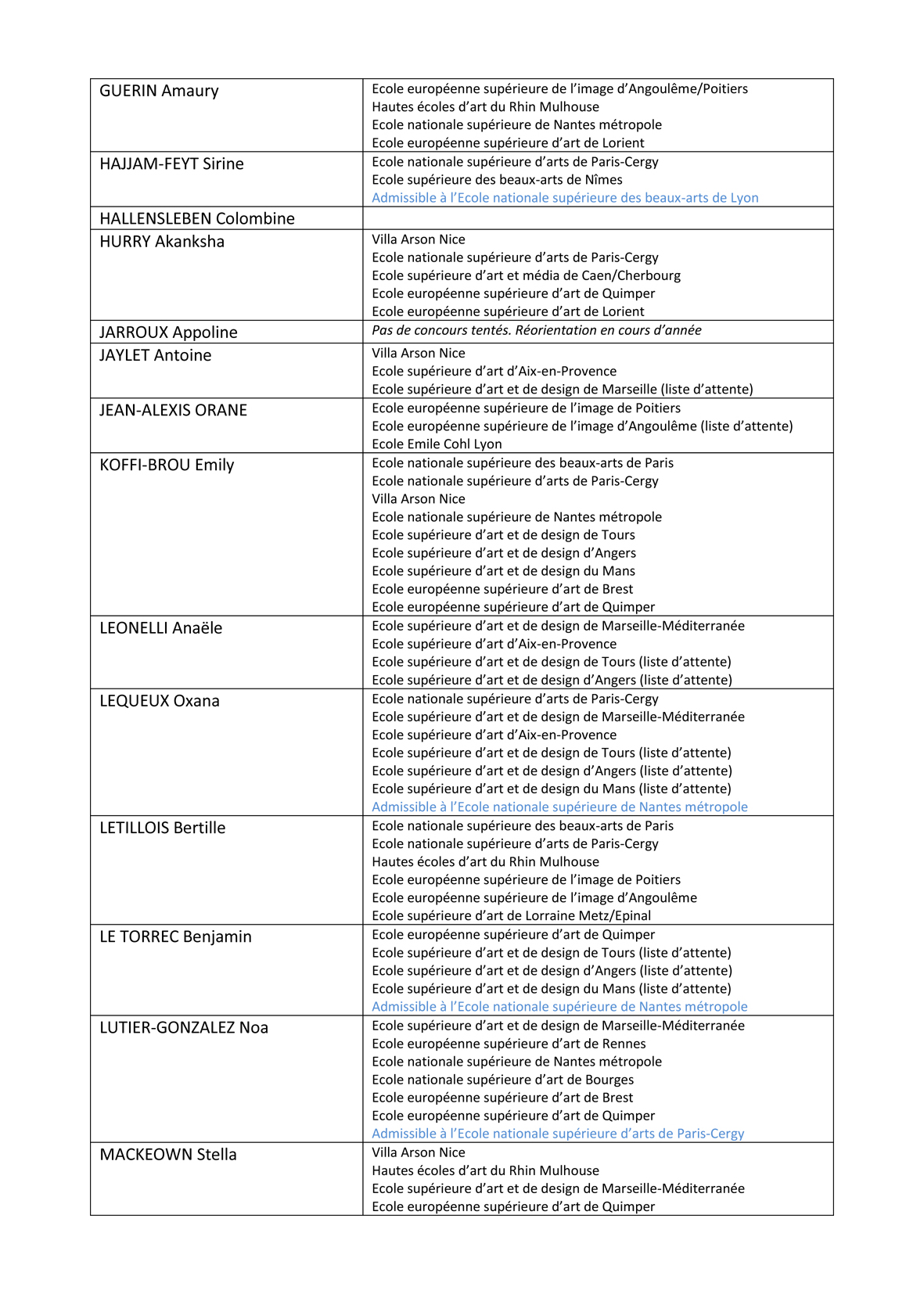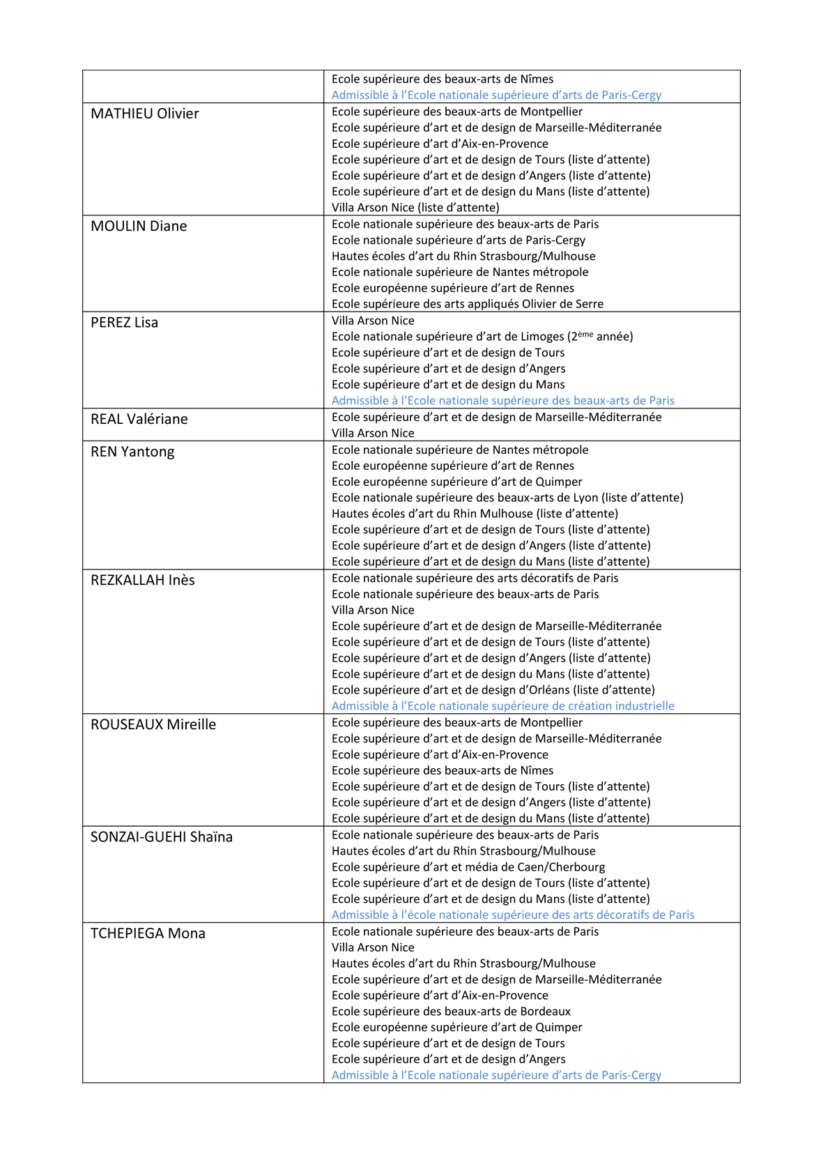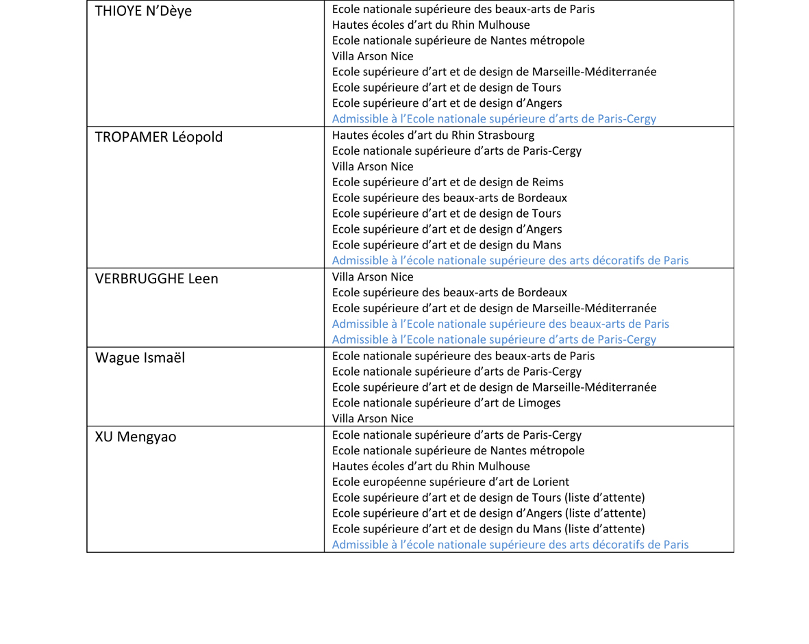 Récapitulatif des résultats d'entrée dans les écoles d'art 2/6