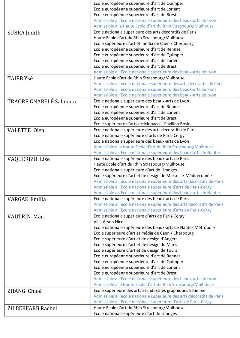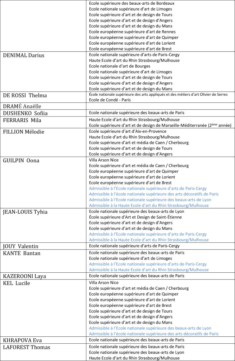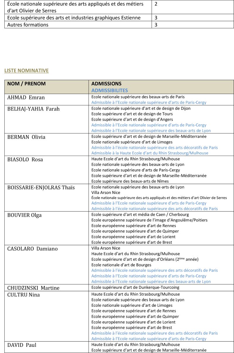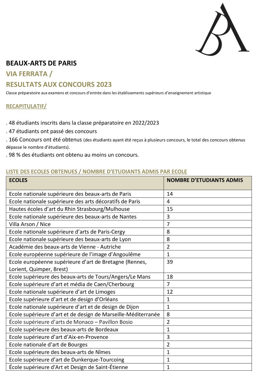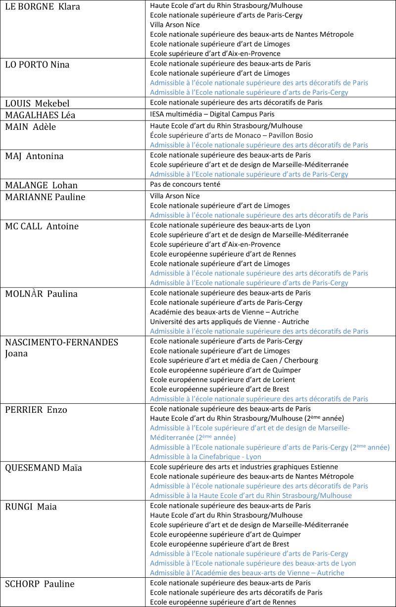 Parmi cette promotion 2022/2023 (promotion ERIGAL), 98% des étudiantes et étudiants ont réussi à intégrer une école supérieure d’art. 166 concours ont été réussi.