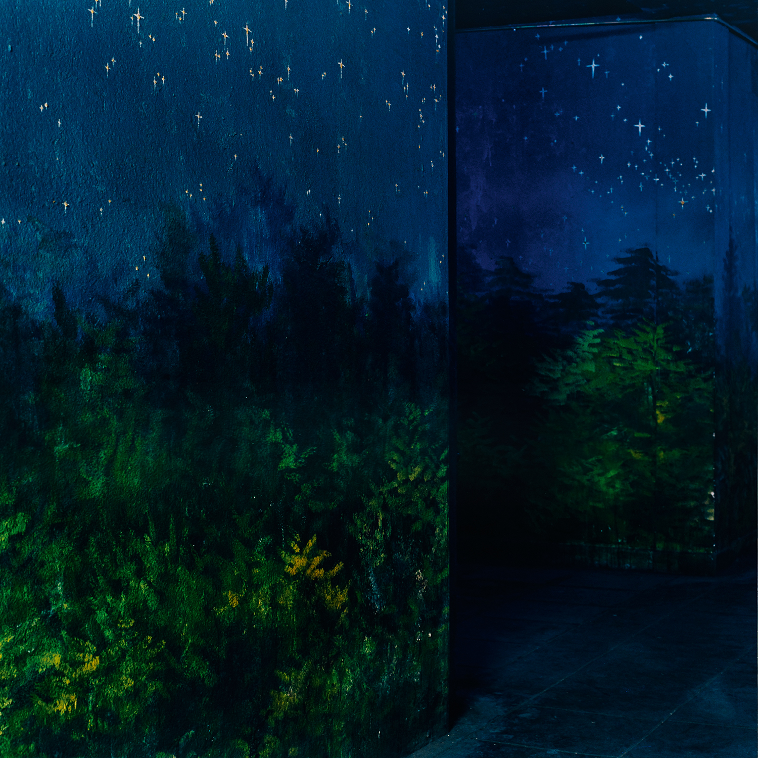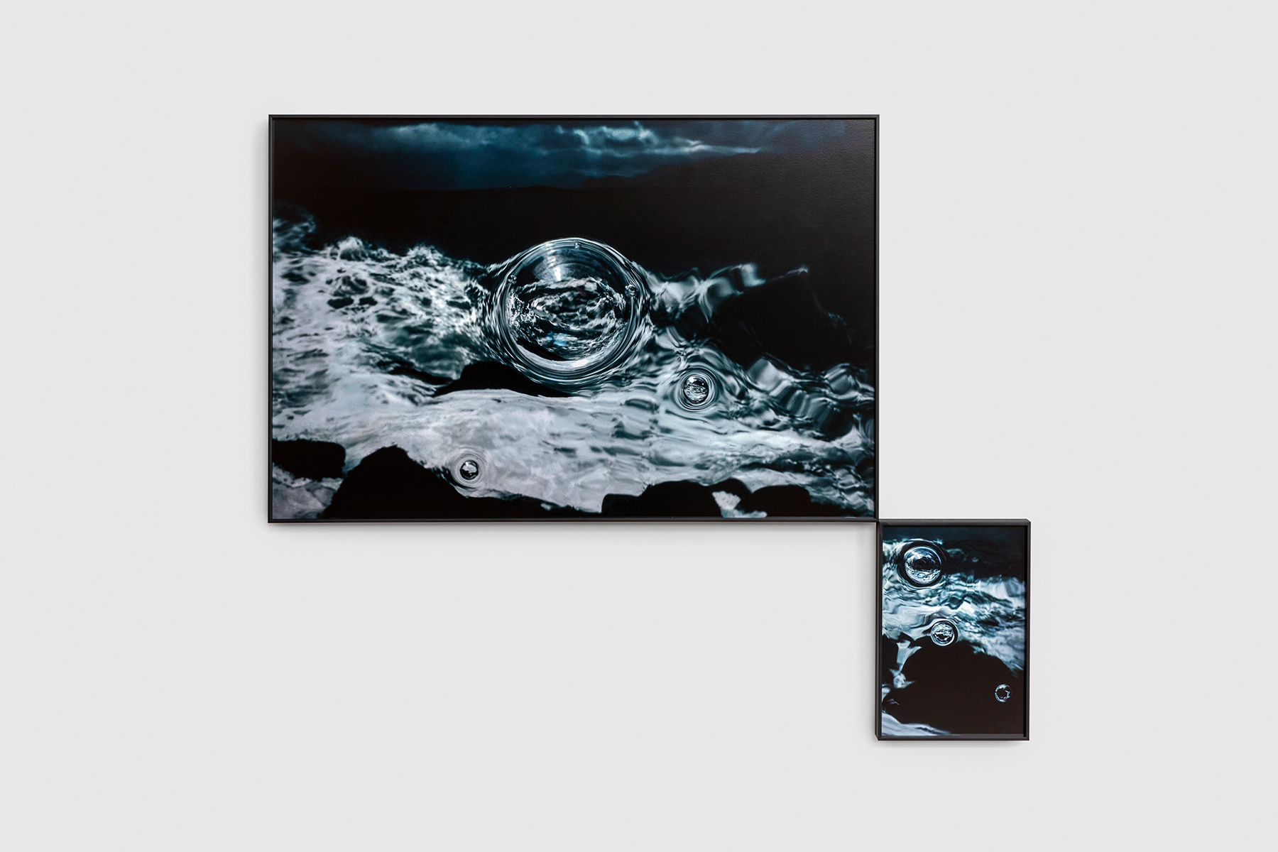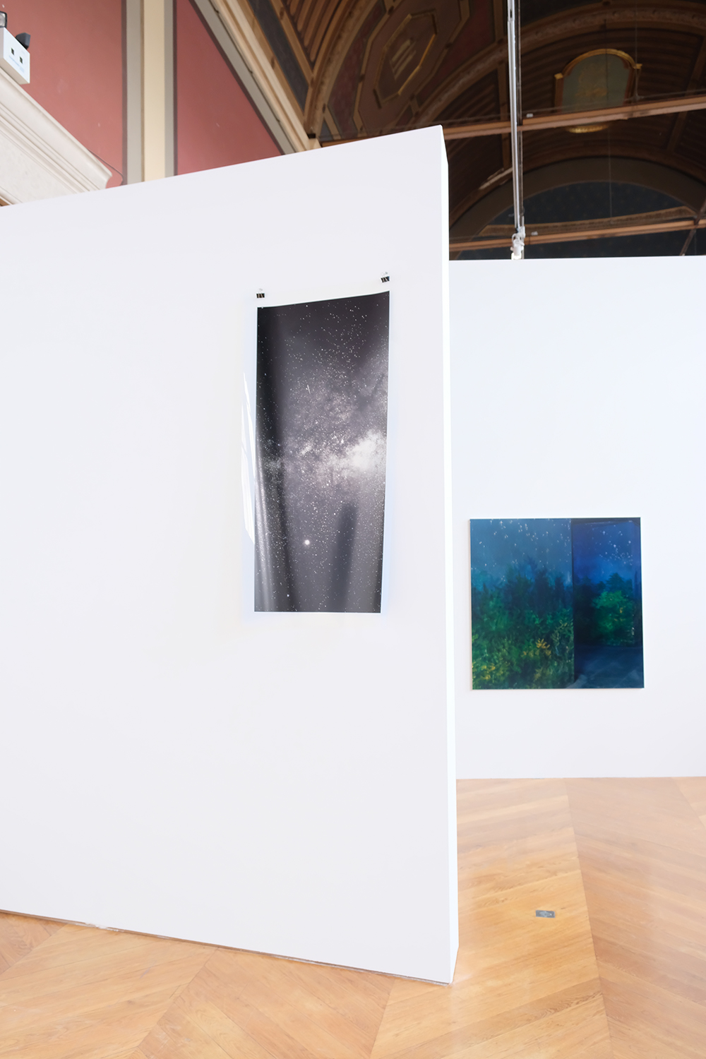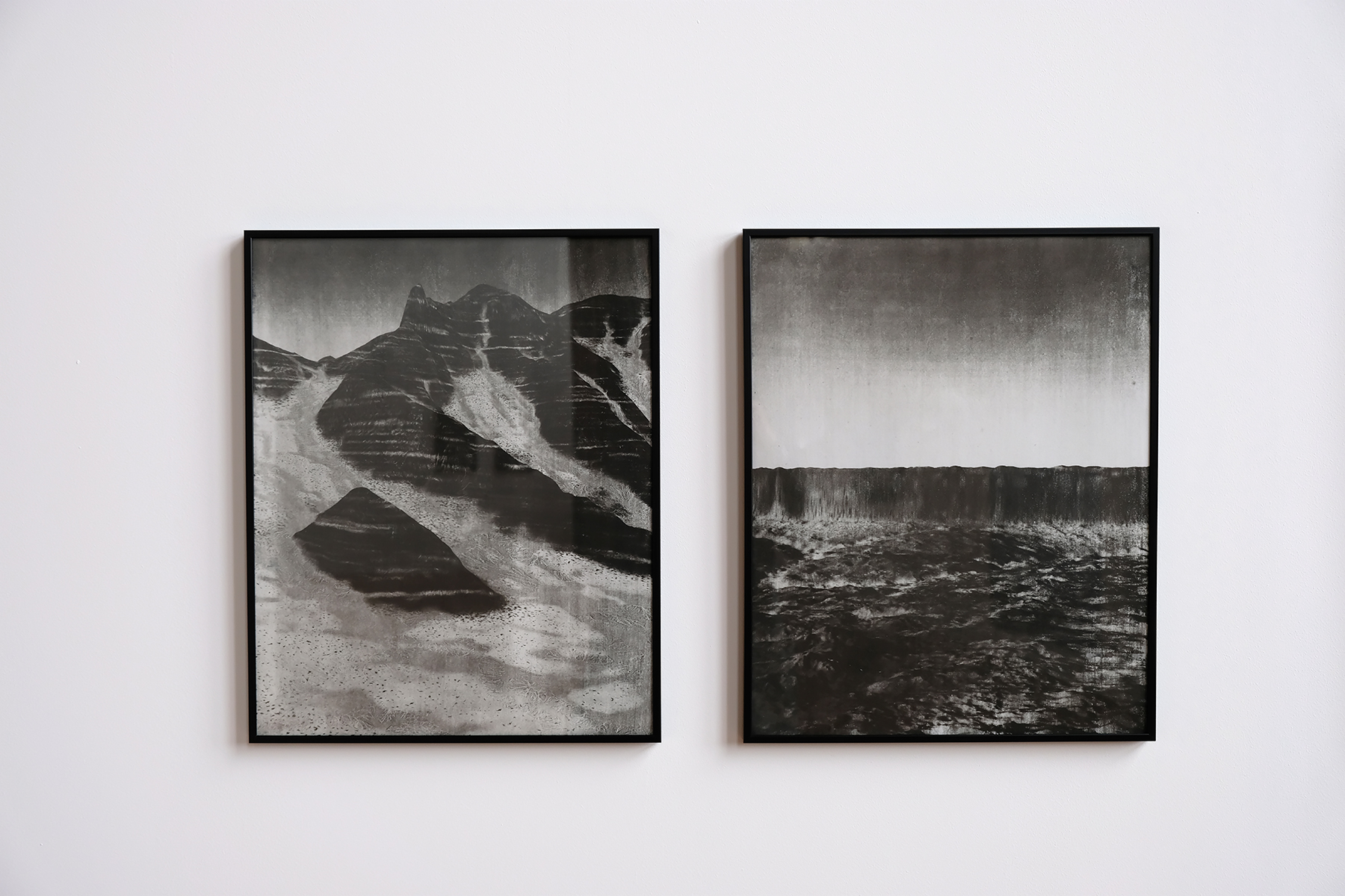 The corpus of the exhibition Abes Fabes Kartoflyabes tends to question our relationship to space and our environment by giving us a microscopic place. From the outset the scales are questioned. The place of the photographer is confused with that of the visitor, the spaces overlap and the hanging attempts a mise en abyme of the subject of the exhibition: the landscape. This exhibition is like a giant diorama. The viewer is included in the exhibition space as if he were walking through a landscape. The photographs are on the wall, but also on the ground, in the form of sculpture, or in the space acting as rocks to be circumvented. Thought as the index of an exhaustive definition of the landscape, several photographic techniques