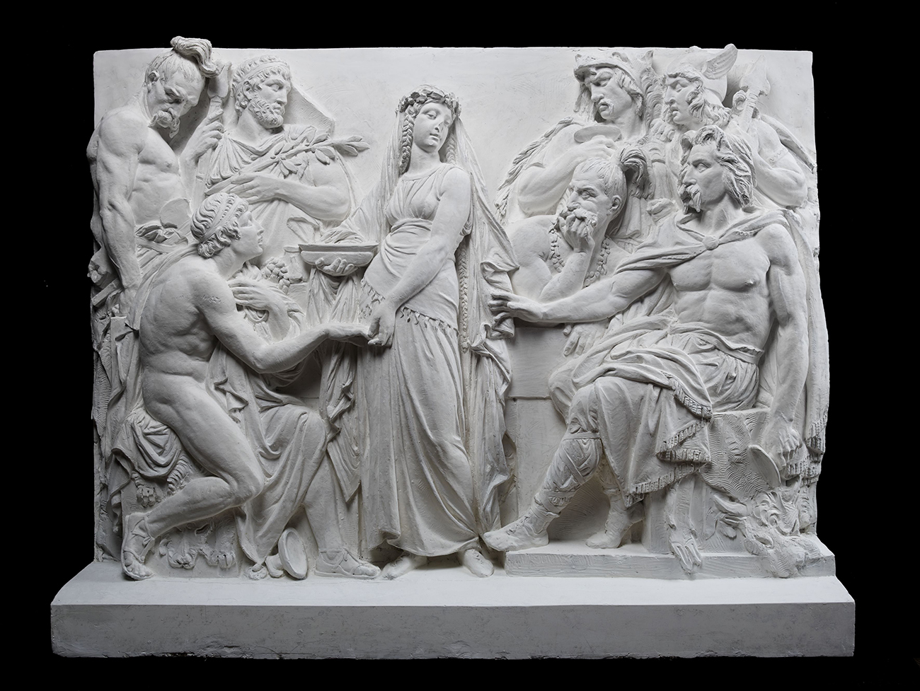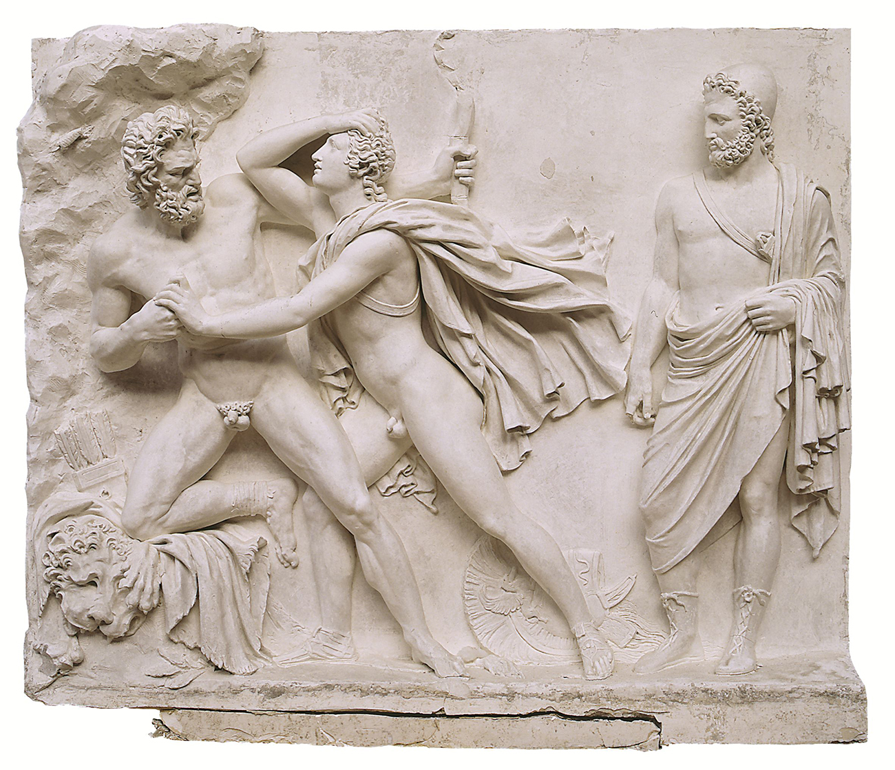 Jean-Jacques, dit James, Pradier, Néoptolème empêche Philoctète de percer Ulysse de ses flèches, 1813, plâtre, 128 x 154 x 30 cm