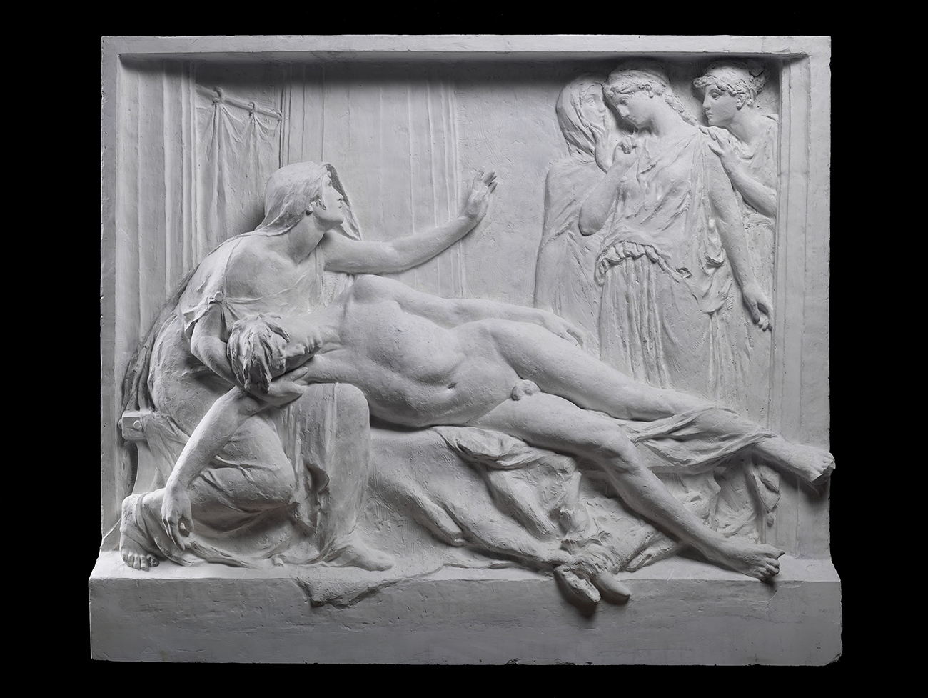 Lucienne Antoinette Adélaïde Heuvelmans, Électre veillant sur le sommeil d’Oreste, 1911, Plâtre, 140 x 165 x 30 cm