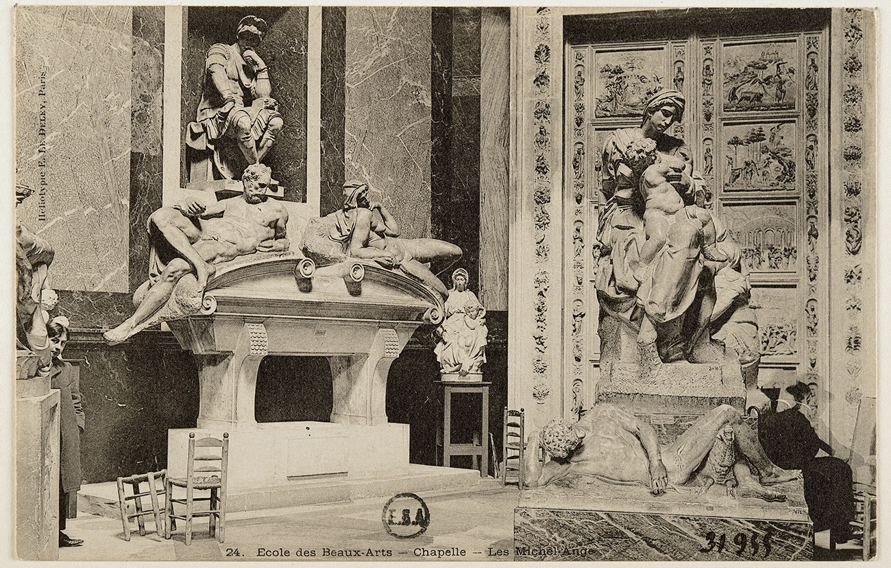 Ernest Louis Désiré Le Deley, Vue de la chapelle des Louanges avec les moulages de Michel-Ange, 1903, Carte postale, 9 x 14 cm